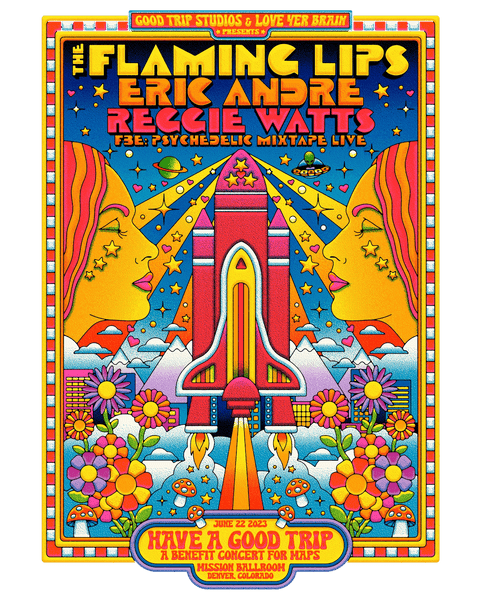 June 22! Denver! @GoodTrip benefit show for @MAPSnews featuring performances by The Flaming Lips, @EricFuckingAndre, @ReggieWatts, and @FascinatedByEverything’s The Psychedelic Mixtape Live. Plus a special pre-show and special guests.